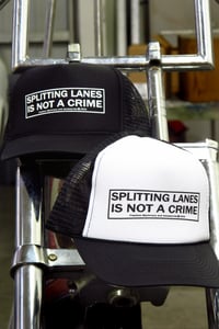 Even if splitting lanes is legal in your state, let everyone know you want it to stay that way with our Splitting lanes Is Not A Crime hat. In choose a black or white panel hat.